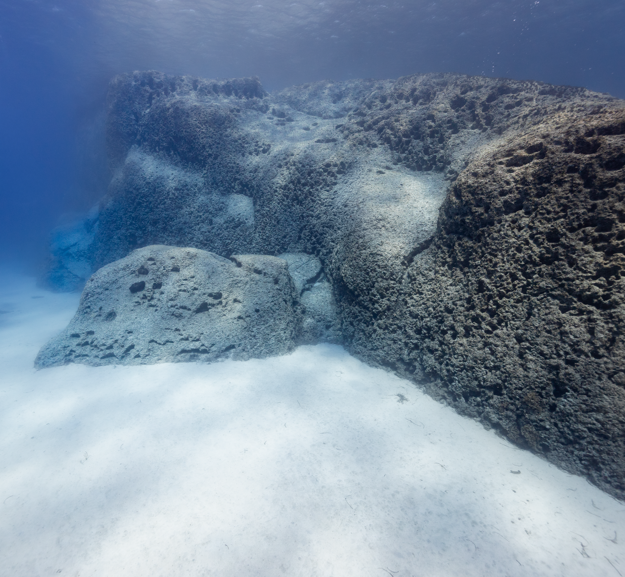 Located right next to the Green Bay entry, this site offers a slightly deeper profile, reaching down to about 18 meters. Its main feature is a large swim‑through hole, surrounded by trenches and rocky structures that make the dive both fun and varied. The visibility here is usually excellent, allowing you to fully appreciate the dramatic formations. Lionfish are commonly seen along the rocks, and turtles sometimes glide past on their way through the bay. It’s a great option for divers who want something a little more adventurous while still staying close to shore.