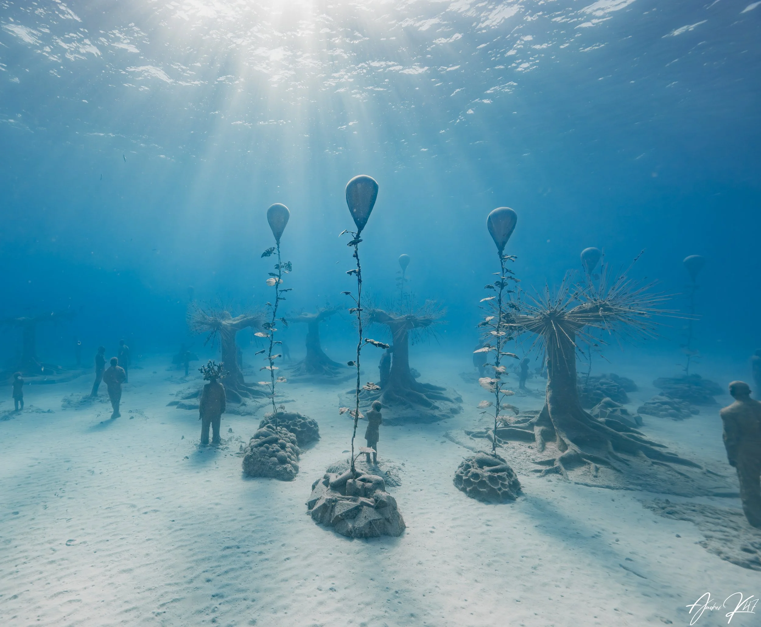 The Museum of Underwater Sculptures Ayia Napa (MUSAN) opened in 2021 and features 93 sculptures created by artist Jason deCaires Taylor. The dive begins from shore and leads you into a forest‑like arrangement of statues shaped like trees, figures, and abstract forms. With a maximum depth of around 12 meters, it’s suitable for beginners as well as snorkelers and freedivers. Algae and marine growth have already begun to cover the sculptures, creating a developing habitat for fish and other species. The combination of art and nature makes MUSAN a unique experience.